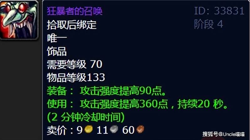 同样来自祖阿曼的狂暴者的召唤,是物理系玩家的另一个爆发选择。作为最终BOSS祖尔金的掉落物,它以简单直接的攻击强度加成,成为了猎人、增强萨等职业的最爱。