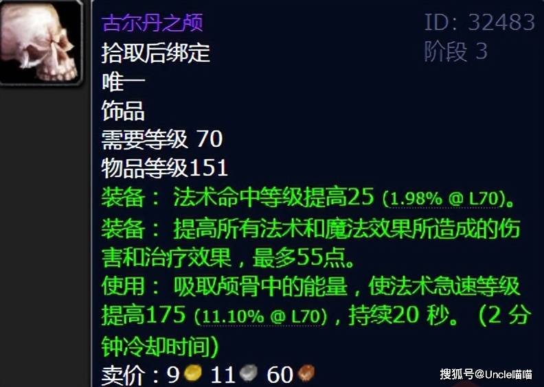 古尔丹之颅的属性堪称恐怖如斯,常驻55点法术强度,25点命中等级,这直接解决了法系玩家配装时最头疼的命中缺口。主动使用后还能获得20秒的高额急速加成,搭配2分钟的短冷却,无论是BOSS战爆发还是AOE清场,都能让伤害瞬间飙升。在那个DKP团盛行的年代,古尔丹之颅每次掉落,都会引法系DPS的激烈争抢,喵叔当年记得团队还因为他而分崩离析,“DKP收割机”的名号实至名归。