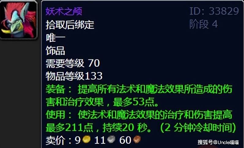 祖阿曼副本的开放,让妖术之颅走进了玩家的视野。BOSS妖术领主玛拉卡斯的掉落物,它凭借超高的性价比,成为了TBC版本中普及率最高的法系饰品之一。