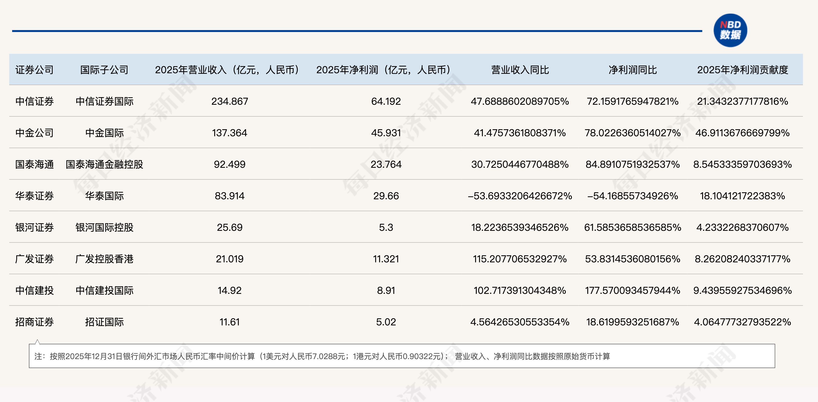 记者注意到,前述8家头部券商境外子公司中,中信建投国际实现营业收入和净利润翻倍增长。数据显示,中信建投国际2025年营业收入同比大增102.72%,净利润同比大涨177.57%。