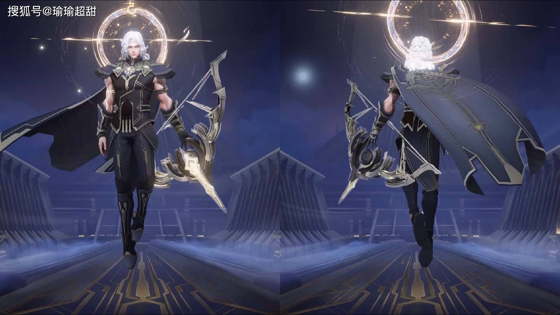 这款皮肤叫做天穹守望者,如上图所示,这是这款皮肤的形象设计,整体的设计主要是以暗金色为主,看着还是挺帅气的,白色的头发,还有那飘逸的斗篷,背后还有一个大光环。